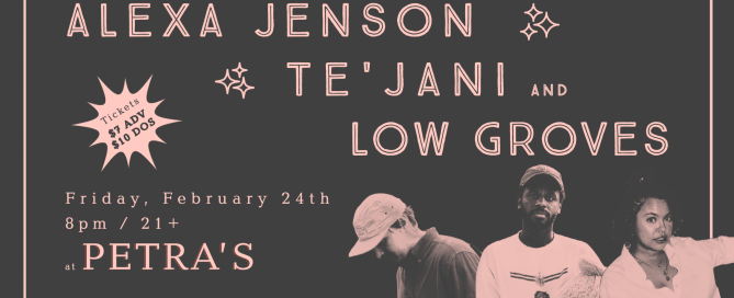 Friday, February 24th Doors: 8pm | Show: 9pm Tickets: $7 Advance | $10 Day Of • 21+ with valid ID Alexa Jenson A young, angsty, female singer-songwriter walks into a rock 'n' roll club for the first time, rounds up the most talented musicians in the joint, forms a band that brings sass, skill, [...]