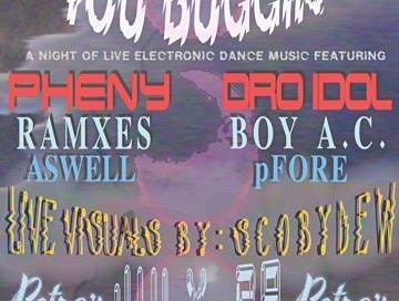 Friday, July 29th Doors: 8pm | Show: 9pm Tickets: $7 Advance | $10 Day Of • 21+ with valid ID Chill Out... You Buggin: A Night Of Live Electronic Music Featuring Pheny | Dro Idol | RMXES | Boy A/C | Aswell | pFore