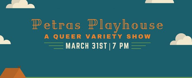 Thursday, March 31st Doors: 7pm | Show: 8pm Tickets: $5 Advance | $7 Day Of • 21+ with valid ID and face mask Onya Presents: Petra’s Playhouse, a queer variety show that mixes Trivia, Drag, and Everything in between.