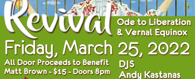 Friday, March 25th Doors: 8pm | Party: 9pm Tickets: $15 • 21+ with valid ID and face mask An ode to liberation and Vernal Equinox with DJs Andy Kastansas That Guy Smitty Scott Weaver Probably Will Dr. Mike P All door proceeds to benefit Matt Brown